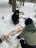 Denne reisen tilbake i tid fikk elevene i 5. trinn på Roverud skole være med på denne februardagen i 2025. Her fikk de prøve seg som skogsarbeidere hvor trær ble felt, kvistet, kappet og barket, selvfølgelig på samme måte som i 1920. Tømmeret ble så lunet og kjørt bort med hest. Matpakka ble selvfølgelig også inntatt ute i naturen.
