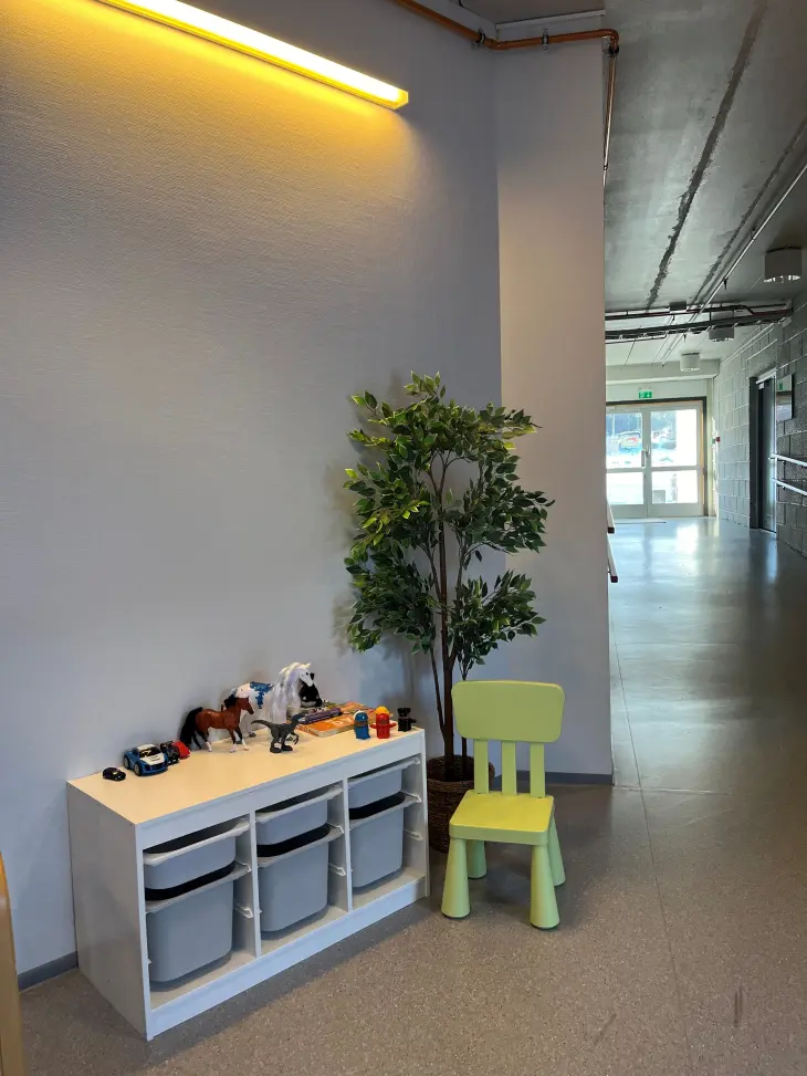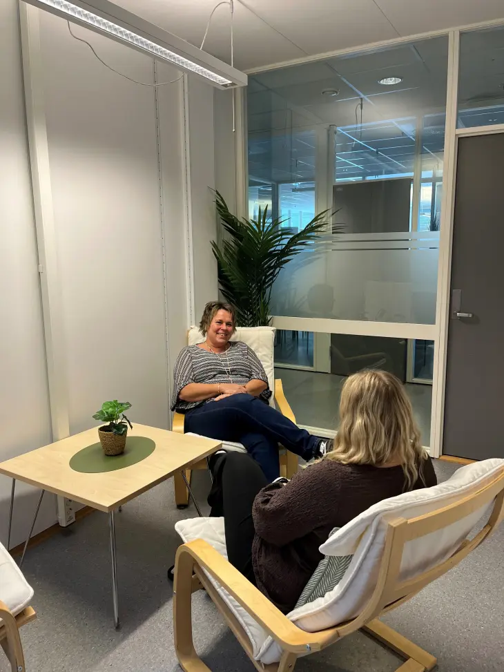 Antallet møterom har økt betydelig, med både interne rom, samtalerom og større rom for samarbeids- og fagmøter. De har lagt stor vekt på å innrede møterommene slik at de gir en positiv atmosfære. Selv om de fortsatt mangler noe dekor på veggene, er rommene nesten ferdige. To av samtalerommene er innredet med lenestoler for å skape en mer avslappet samtalekontekst, noe som gir muligheter for gode samtaler og veiledninger.