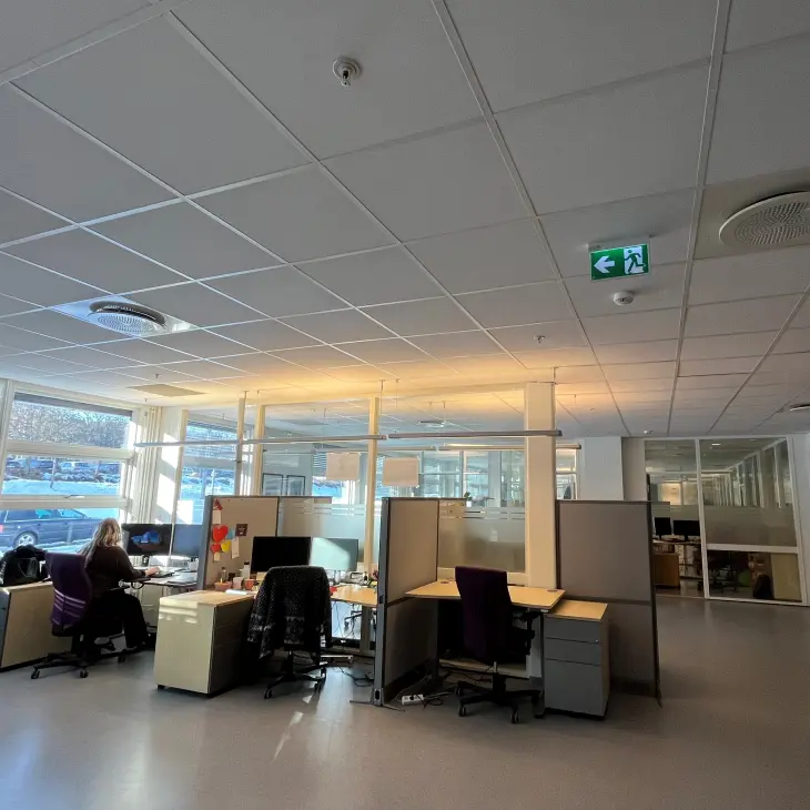 De nye lokalene dekker alle behov for kontorplasser og møterom. Med en blanding av åpent landskap og private kontorer, samt glassvegger som slipper inn mye lys, har de skapt en lys og åpen arbeidsplass. Ved inngangen til de ansattes område har de laget et fagområde med en komfortabel sofa og hyller fylt med fagstoff og verktøy til bruk i arbeidet. Her kan man lese, diskutere eller låne med seg fagstoff til arbeidsplassen.