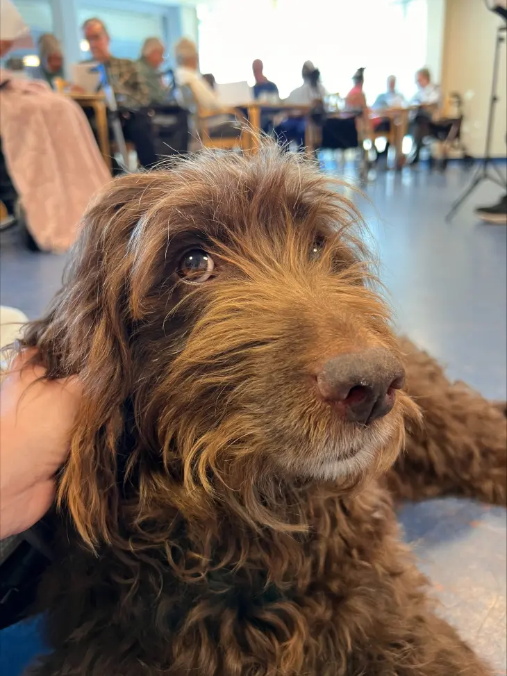 En firbeint venn har også vært på besøk, til stor begeistring for både pasienter og ansatte. Dyr har en unik evne til å vekke gode minner og skape øyeblikk av nærhet og glede – noe som virkelig setter spor i hverdagen.
