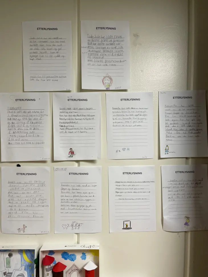 Elevene jobbet på tvers av trinn med skriving og tegning, samt sang, musikk og kunst og håndverk. Resultatet ble både etterlysninger, kardemommefigurer og ellers hva som måtte høre til i et slikt prosjekt.