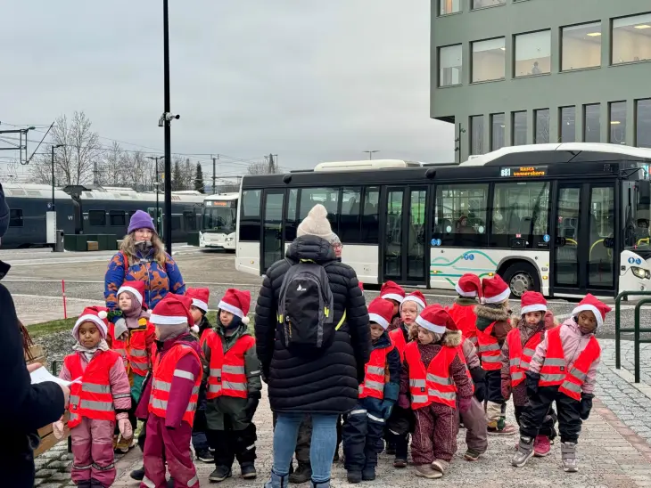 Barna fra Langeland barnehage fikk gratis bussbilletter for å komme til stasjonen og underholde. De sang blant annet «Hjulene på bussen» og flere sanger, til stor glede for alle fremmøtte.